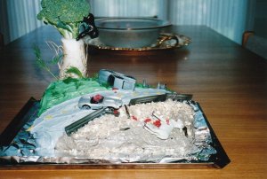 To be honest, I forget who we made this cake for, or who came up with the idea, since it was created many years ago. But what an idea it was: a cake depicting a car accident in Africa.