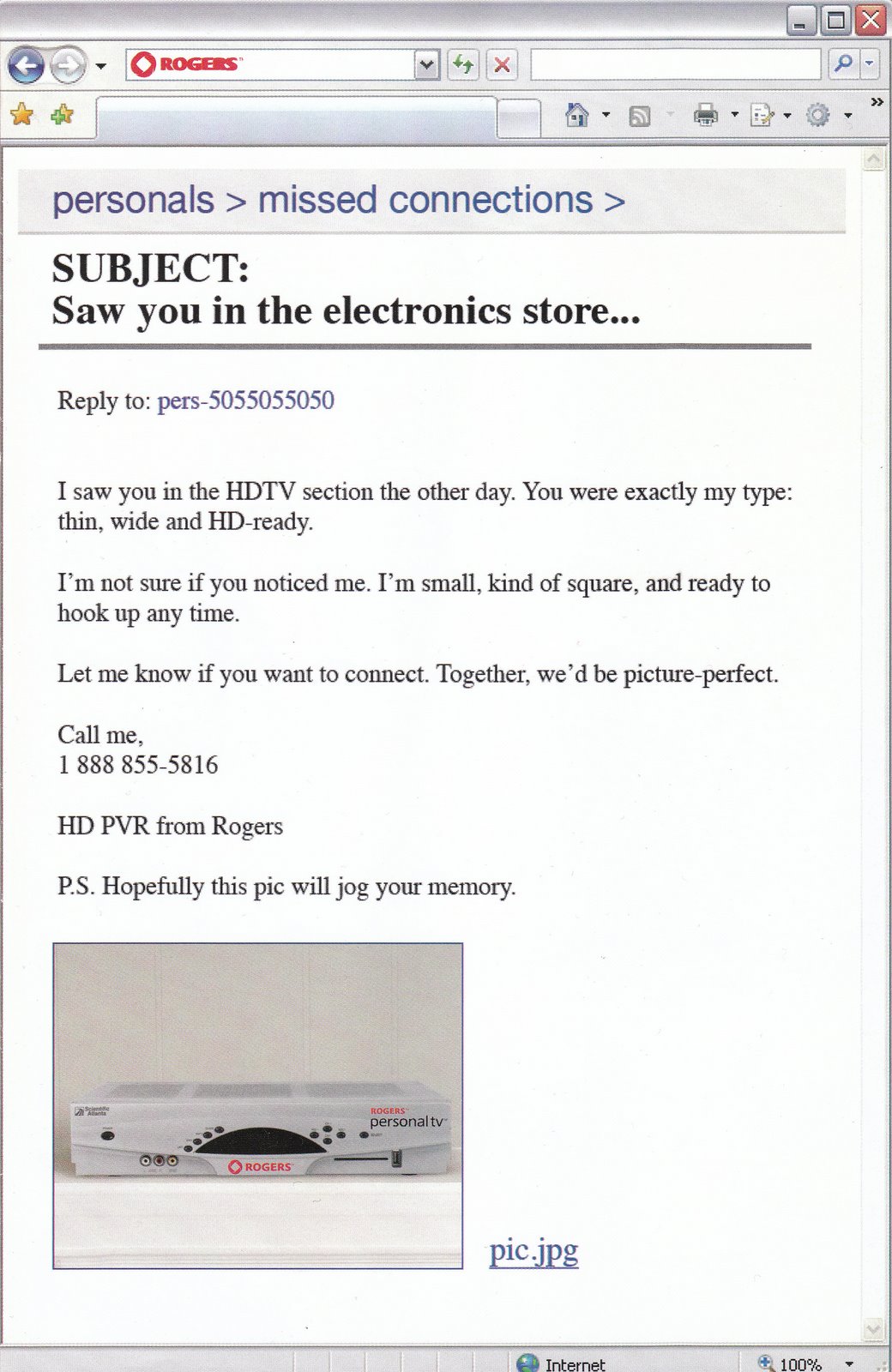 P.S. If I worked at Rogers, I would say “Roger that” every time someone said anything to me.