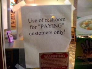 So I guess this means the washroom is for non-paying customers. Either that, or for customers who “pay” through some unusual and undoubtedly sexy method.
