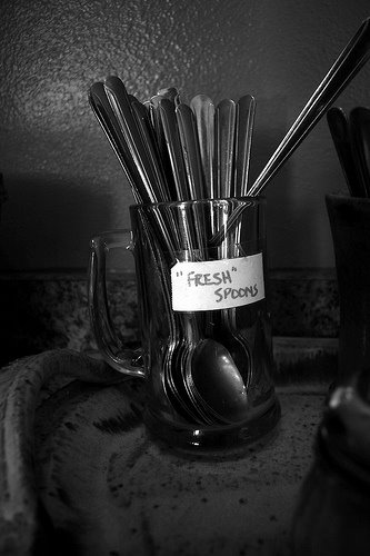 Of course, for anyone with a basic grip on punctuation, this actually means the spoons are not fresh. They are old, rotten spoons. Maybe they should have been kept in the fridge.