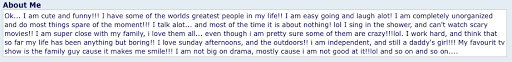 Remember that post about internet dating from a while back, and all the people I cruelly made fun of? Well, “lol spare of the moment!!!!!!” girl (this one) just sent me a message out of the blue. She wants to chat.