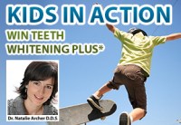 The third is Kids in Action, sponsored by Toronto dentist Natalie Archer. You’re supposed to take pictures of kids with “devil may care attitudes.” Like this kid, who seems to be falling off a skateboard. Yeah, he’ll probably need a dentist soon. Anyway, sacrifice your kids and you can win a tooth whitening kit. Anything to look beautiful.