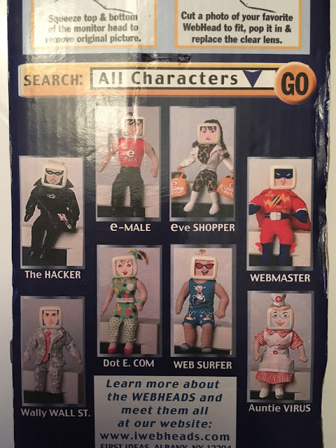 That’s right, Auntie Virus is only one member of the WebHeads family. All the classic early Internet stereotypes are here, like the aforementioned e-MALE (a person with a penis who is online), The HACKER (a hacker), WEB SURFER (lol he’s a literal surfer), eve SHOPPER (an online shopper who still needs bags?), WEBMASTER (a superhero for some reason?), and Dot E. COM (um … a person with a plant on her head … ???).